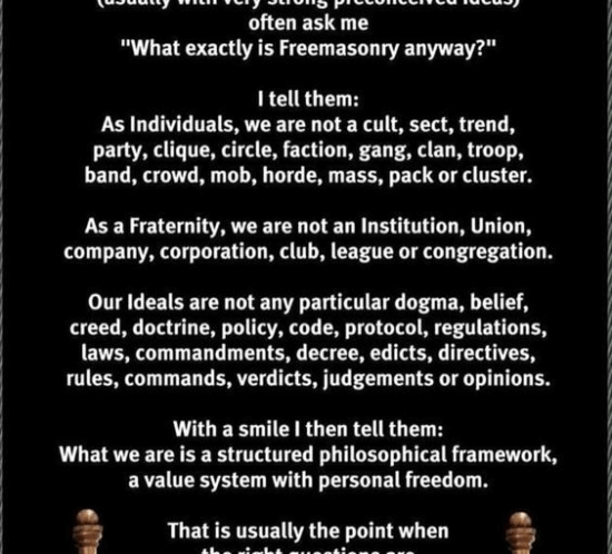 Freemasons are encouraged to seek knowledge and review the tenets and teachings of Freemasonry regularly throughout their lives. Freemasonry encourages good family living, supporting your neighbours and fellow man especially when they need assistance. Freemasonry teaches the man to seek “information that will assist in improving the world around him” which qualifies as Masonic Knowledge. Thus our efforts to find Daily Advancements in Masonic Knowledge are to build a better world for all.